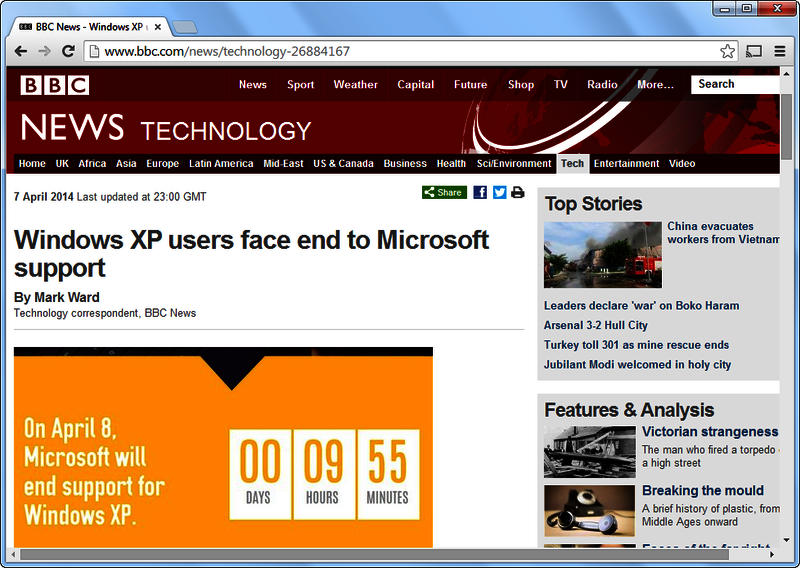 informó sobre el fin del soporte a Windows XP y los peligros existentes originados por la falta de actualizaciones de seguridad.