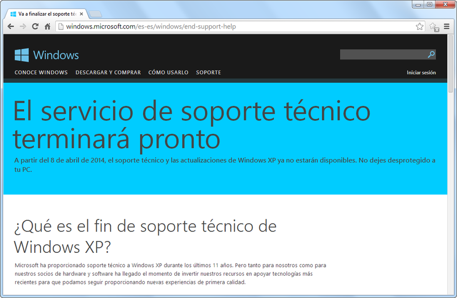 se puede seguir el fin del soporte para XP con el temporizador oficial de cuenta atras (www.microsoft.com/de-de/windows/xp)