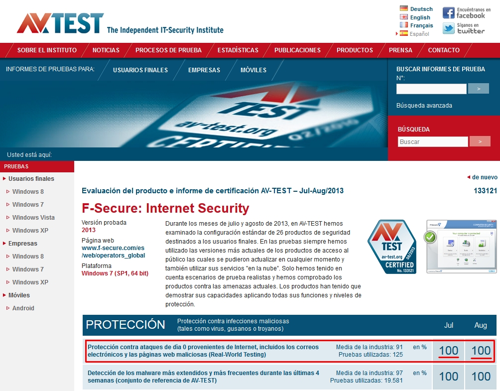 Nuestro consejo: ¿quiere utilizar una solución de seguridad que le proteja especialmente de troyanos totalmente nuevos? En las pruebas de AV-TEST puede consultar bajo la categoría de valoración “Protección” el porcentaje alcanzado en “Protección contra ataques de día 0 provenientes de Internet, incluidos los correos electrónicos y las páginas web maliciosas (Real-World Testing)”. Las soluciones que alcanzan un 100 por cien se defienden especialmente bien de los ataques de software malicioso reciente como los troyanos de la policia, etc.