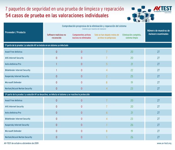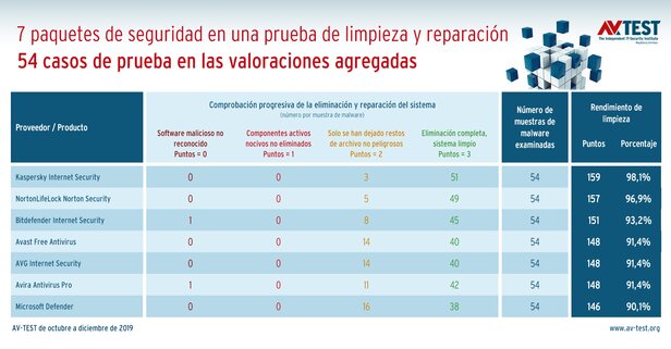 La suite de seguridad obtuvo el mejor resultado en la prueba de limpieza y reparación