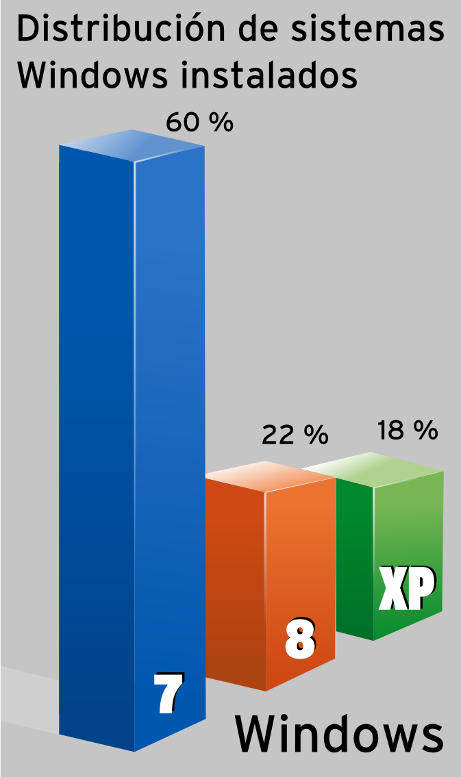 Diversos portales de estadística indican que en todo el mundo más del 60 % de los PCs con Windows funcionan con Windows 7 (mayo de 2015).