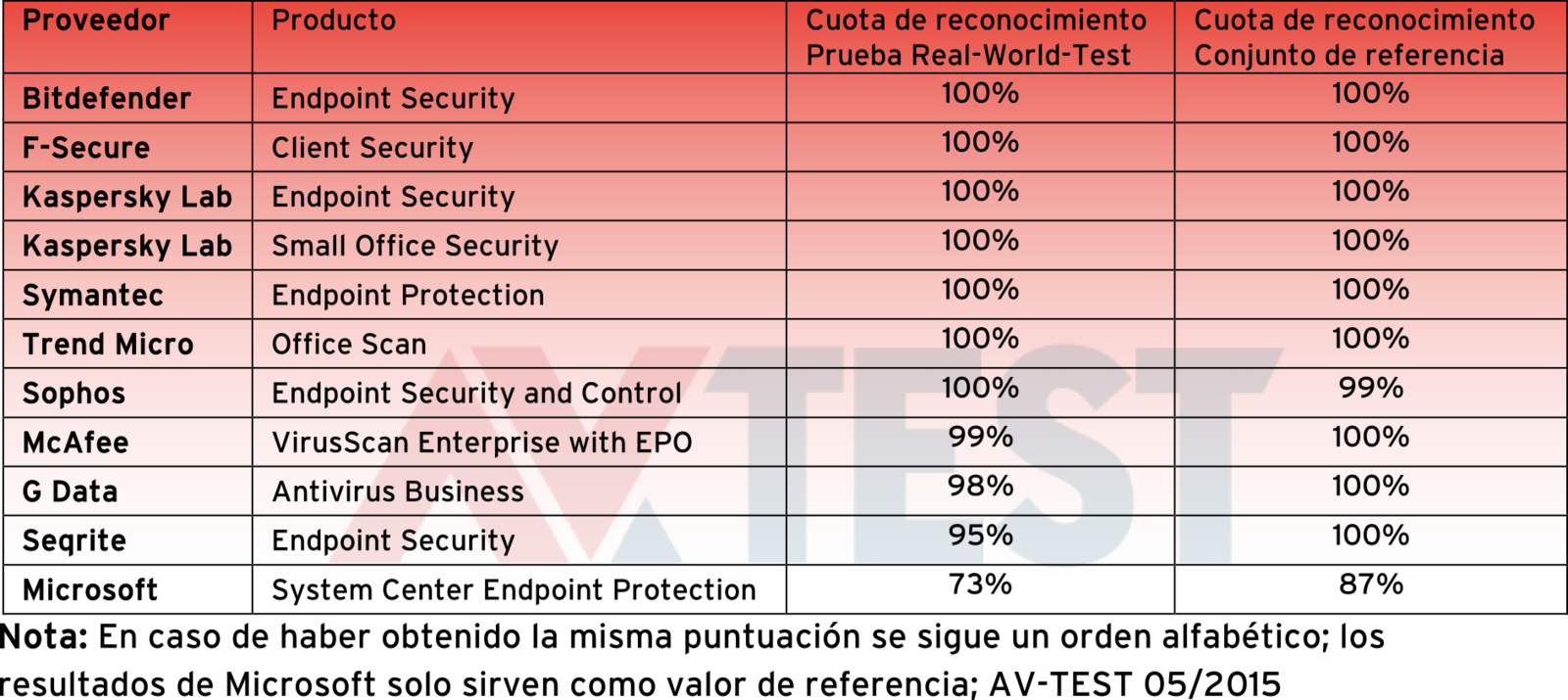 Aquellas empresas que busquen una solución de seguridad fiable para Windows tienen muchos productos de calidad entre los que elegir. En la actual prueba de AV-TEST se sometieron a análisis 10 soluciones de seguridad para redes empresariales. A modo comparativo se incluyó, como 11º producto, el módulo de seguridad de Microsoft Endpoint Protection 2012. Este forma parte de la suite de gestión de Microsoft System Center 2012 y viene incluido de forma gratuita. Como plataforma de prueba se utilizó Windows 7.