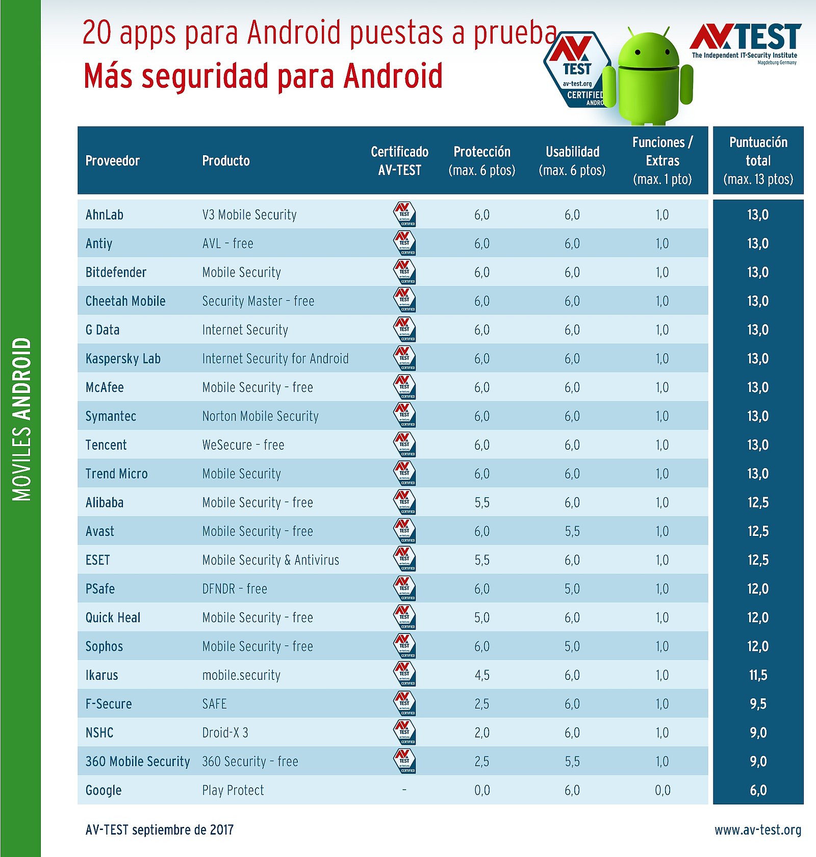 En la prueba actual, el laboratorio de AV-TEST ha comprobado la protección, usabilidad y funciones/extras de 20 aplicaciones y de la función de seguridad de Android, Google Play Protect.