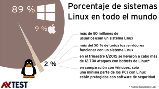 La mayoría de los usuarios de Linux están convencidos de que utilizan uno de los sistemas más seguros que existen. Esta afirmación es correcta si solo se tiene en cuenta el sistema y se deja fuera todo lo demás, puesto que, de nuevo, son aplicaciones inseguras o fallos de los usuarios los que convierten los PCs o servidores con Linux en propagadores de virus. Así lo demuestra también el último estudio de Kaspersky (en inglés) para el primer trimestre de 2015 : más de 12.700 ataques se produjeron a través de botnets que utilizan el sistema Linux como base; mientras que solo 10.300 ataques provenían de botnets con sistemas Windows. Además, la vida útil de las botnets basadas en Linux es mucho mayor que la de las basadas en Windows. Esto se debe a que es mucho más difícil detectar y desactivar este tipo de redes zombis, dado que el servidor con Linux raras veces está equipado con soluciones de seguridad especiales; al contrario que los equipos y servidores con Windows.