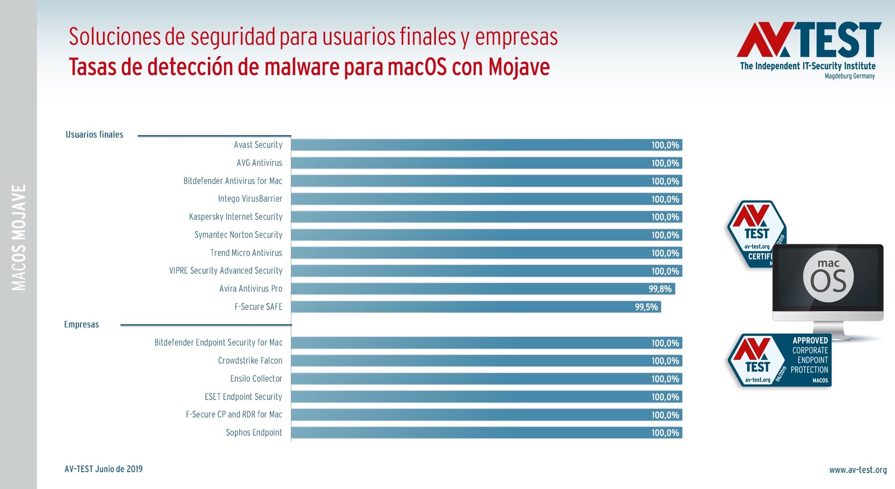 Quien piense que los usuarios de Mac no son un objetivo que merezca la pena para troyanos, ransomware y compañía, se equivoca. Cada vez hay sueltos más atacantes, que AV-TEST recopila, registra y cataloga. Para aumentar la ciberseguridad de los dispositivos Mac, el mercado ofrece diversas soluciones de software de seguridad. En junio de 2019, el laboratorio de AV-TEST ha examinado muchos de estos paquetes con el nuevo MacOS Mojave: 10 de ellos van destinados a usuarios finales y 6 a su uso en empresas.