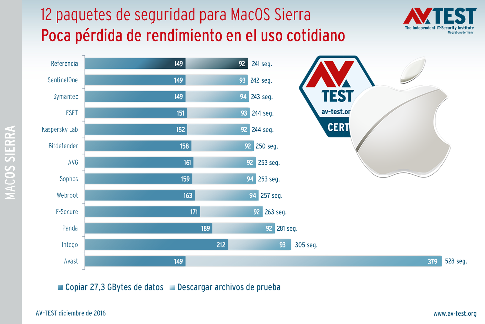 Ninguno de los paquetes de seguridad incluidos en la prueba desactiva el mecanismo interno de seguridad de MacOS Sierra, sino que lo amplían. Esto, en un principio, suena a mucha más exigencia y carga para el ordenador. Por eso, el laboratorio no solo ha comprobado en esta prueba la protección que ofrecen los programas, sino también si sobrecargan el sistema. En la prueba se incluyeron los siguientes productos: