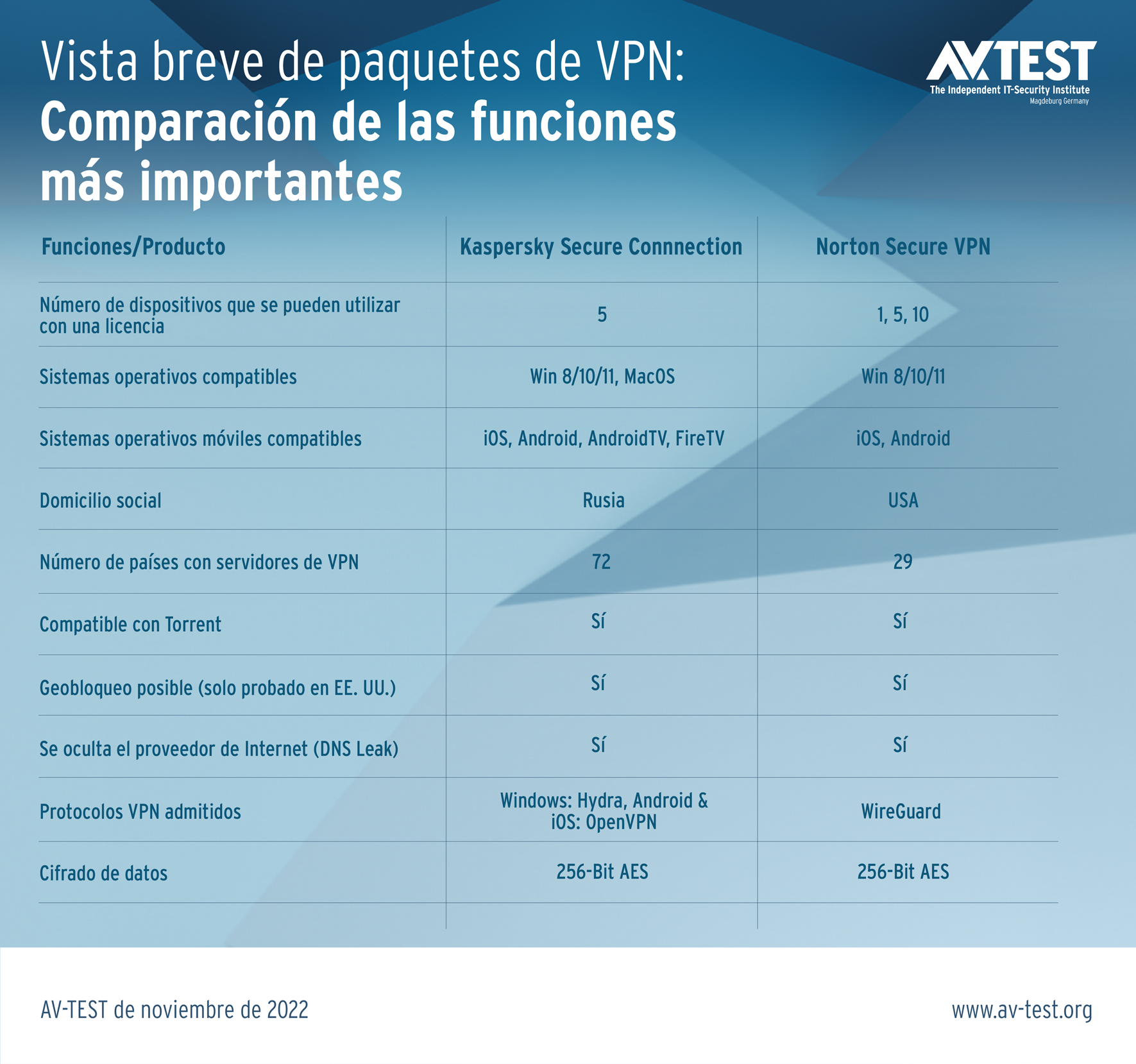 La buena noticia es que los paquetes de VPN de Kaspersky y Norton ofrecen un buen rendimiento en todos los ámbitos, son transparentes y protegen la esfera privada de los usuarios. Por ello, ambos reciben la distinción “Approved Virtual Private Network Solution”.