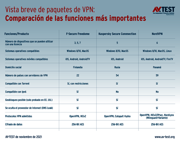 En esta prueba, los paquetes no se ordenan de acuerdo con la puntuación obtenida, esto no sería apropiado. Los paquetes examinados tienen puntos a favor y en contra dependiendo del grupo de usuarios. Si se valora la transparencia, solo Kaspersky tiene un informe de transparencia de libre acceso. Kaspersky y NordVPN ofrecen una auditoría independiente. F-Secure apuesta más por la popularidad de su nombre y la numerosa información sobre la empresa.