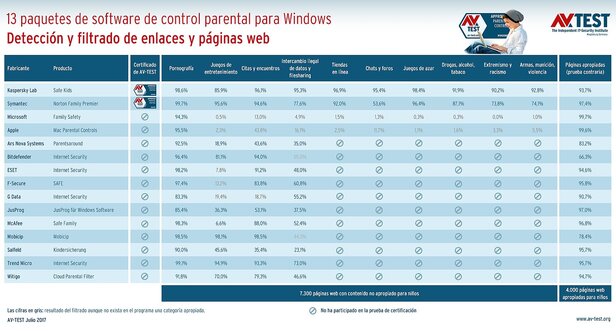 Los productos Kaspersky Safe Kids y Symantec Norton Family Premier satisfacen todos estos puntos, por lo que han recibido el certificado "APPROVED Parental Control Windows 07/2017" de AV-TEST.