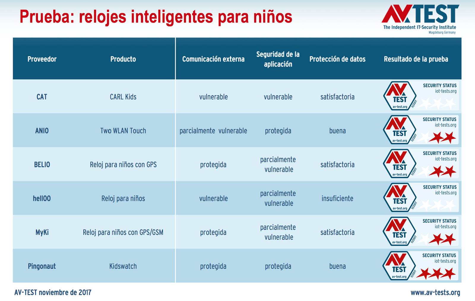 Los resultados de estas pruebas no son para nada tranquilizadores. Las posibilidades de un ataque que se derivan del call ID spoofing ya son suficientes para que el instituto AV-TEST no recomiende ninguno de los relojes infantiles con localizador por GPS examinados.
