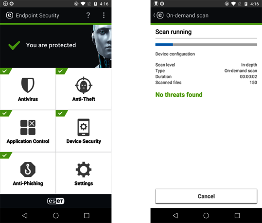 | Protection en temps réel contre les attaques de logiciels malveillants les plus récents sur des appareils Android 2.948 échantillons utilisés | 89% | 99,5% |