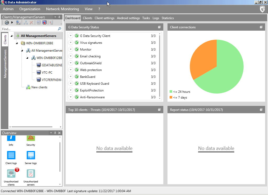 Aux mois de septembre et octobre 2017, AV-TEST a examiné 14 produits de sécurité destinés aux entreprises (Endpoint Protection) dans la configuration prédéfinie par le fabricant. Pour réaliser ces tests, les dernières versions de produits disponibles au public ont été utilisées. Grâce à la mise en jour en ligne, les versions ont pu être mises à jour à tout moment et leurs services « en nuages » étaient accessibles en permanence. AV-TEST n’a pris en compte que des scénarios de test réalistes et testé les produits par rapport aux menaces actuelles. Les produits ont dû prouver leurs capacités lors de l’utilisation de l’ensemble des fonctions et des niveaux de protection.
