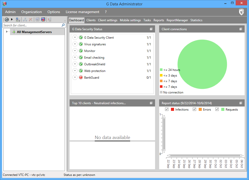 Aux mois de septembre et octobre 2014, AV-TEST a examiné 9 produits de sécurité destinés aux entreprises (Endpoint Protection) dans la configuration prédéfinie par le fabricant. Pour réaliser ces tests, les dernières versions de produits disponibles au public ont été utilisées. Grâce à la mise en jour en ligne, les versions ont pu être mises à jour à tout moment et leurs services « en nuages » étaient accessibles en permanence. AV-TEST n’a pris en compte que des scénarios de test réalistes et testé les produits par rapport aux menaces actuelles. Les produits ont dû prouver leurs capacités lors de l’utilisation de l’ensemble des fonctions et des niveaux de protection.