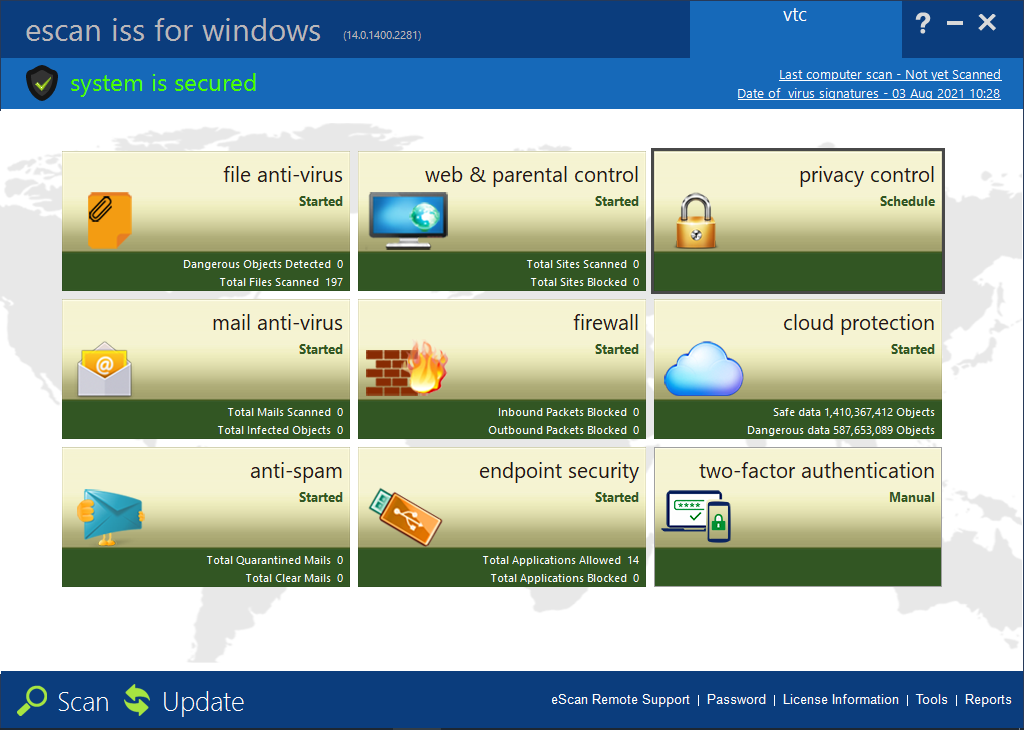 Aux mois de juillet et août 2021, AV-TEST a examiné 21 produits de sécurité destinés aux particuliers, dans leur configuration standard. Pour réaliser ces tests, les dernières versions de produits disponibles au public ont été utilisées. Grâce à la mise en jour en ligne, les versions ont pu être mises à jour à tout moment et leurs services « en nuages » étaient accessibles en permanence. AV-TEST n’a pris en compte que des scénarios de test réalistes et testé les produits par rapport aux menaces actuelles. Les produits ont dû prouver leurs capacités lors de l’utilisation de l’ensemble des fonctions et des niveaux de protection.