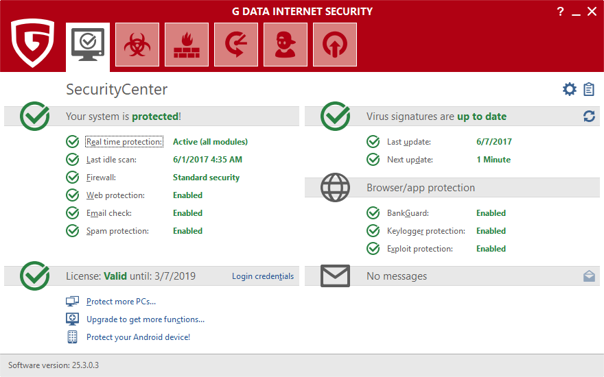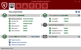 Aux mois de mai et juin 2017, AV-TEST a examiné 18 produits de sécurité destinés aux particuliers, dans leur configuration standard. Pour réaliser ces tests, les dernières versions de produits disponibles au public ont été utilisées. Grâce à la mise en jour en ligne, les versions ont pu être mises à jour à tout moment et leurs services « en nuages » étaient accessibles en permanence. AV-TEST n’a pris en compte que des scénarios de test réalistes et testé les produits par rapport aux menaces actuelles. Les produits ont dû prouver leurs capacités lors de l’utilisation de l’ensemble des fonctions et des niveaux de protection.