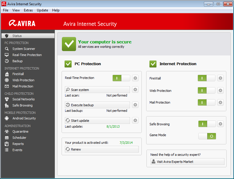 Aux mois de juillet et août 2013, AV-TEST a examiné 26 produits de sécurité destinés aux particuliers, dans leur configuration standard. Pour réaliser ces tests, les dernières versions de produits disponibles au public ont été utilisées. Grâce à la mise en jour en ligne, les versions ont pu être mises à jour à tout moment et leurs services « en nuages » étaient accessibles en permanence. AV-TEST n’a pris en compte que des scénarios de test réalistes et testé les produits par rapport aux menaces actuelles. Les produits ont dû prouver leurs capacités lors de l’utilisation de l’ensemble des fonctions et des niveaux de protection.