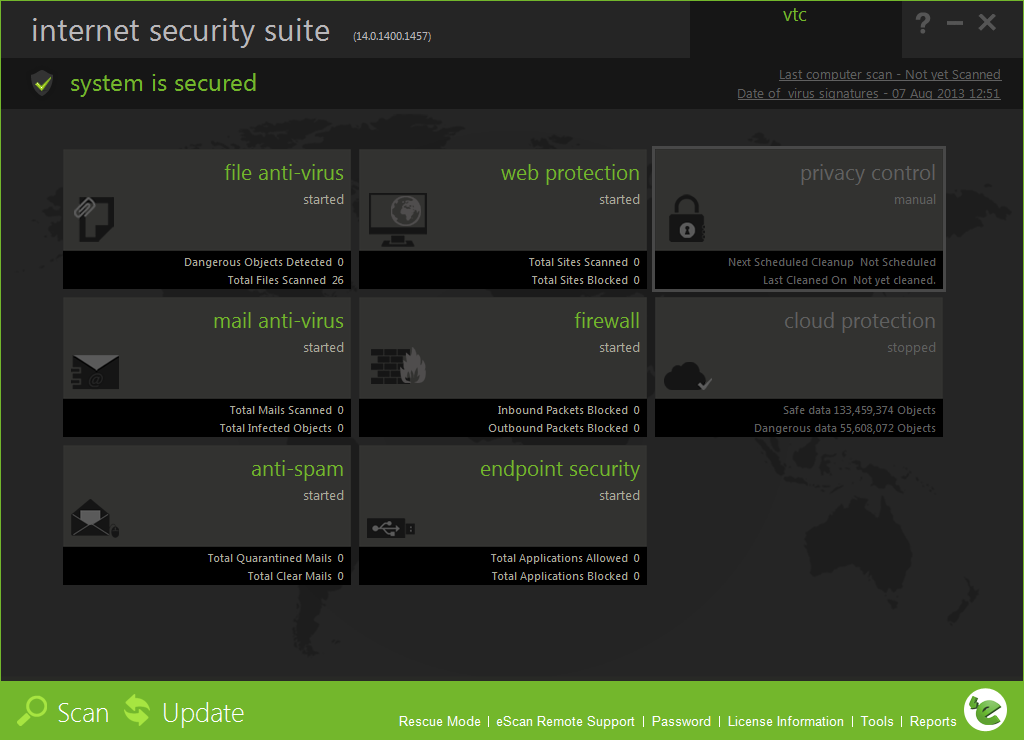 Aux mois de juillet et août 2013, AV-TEST a examiné 26 produits de sécurité destinés aux particuliers, dans leur configuration standard. Pour réaliser ces tests, les dernières versions de produits disponibles au public ont été utilisées. Grâce à la mise en jour en ligne, les versions ont pu être mises à jour à tout moment et leurs services « en nuages » étaient accessibles en permanence. AV-TEST n’a pris en compte que des scénarios de test réalistes et testé les produits par rapport aux menaces actuelles. Les produits ont dû prouver leurs capacités lors de l’utilisation de l’ensemble des fonctions et des niveaux de protection.