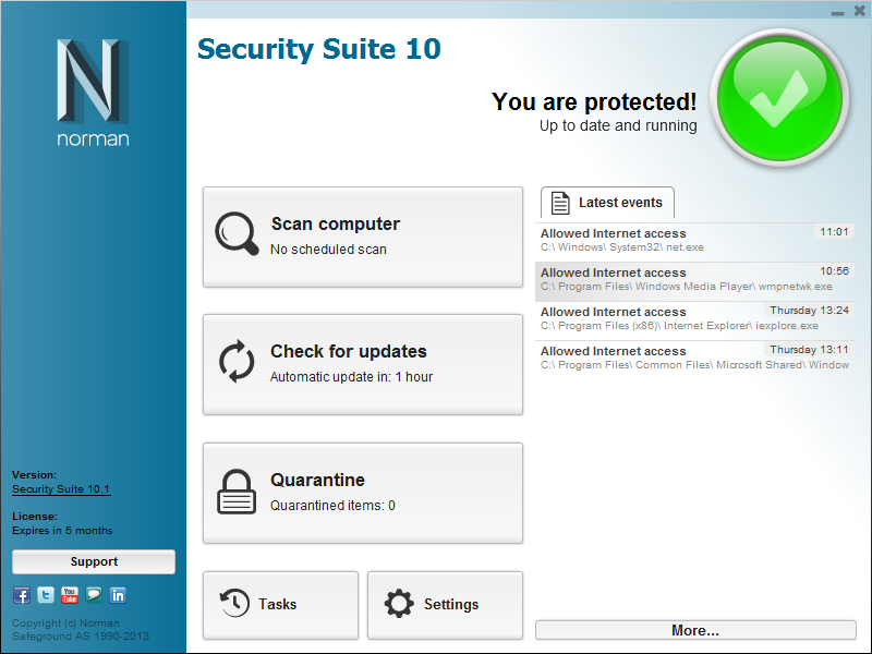 Aux mois de juillet et août 2013, AV-TEST a examiné 26 produits de sécurité destinés aux particuliers, dans leur configuration standard. Pour réaliser ces tests, les dernières versions de produits disponibles au public ont été utilisées. Grâce à la mise en jour en ligne, les versions ont pu être mises à jour à tout moment et leurs services « en nuages » étaient accessibles en permanence. AV-TEST n’a pris en compte que des scénarios de test réalistes et testé les produits par rapport aux menaces actuelles. Les produits ont dû prouver leurs capacités lors de l’utilisation de l’ensemble des fonctions et des niveaux de protection.