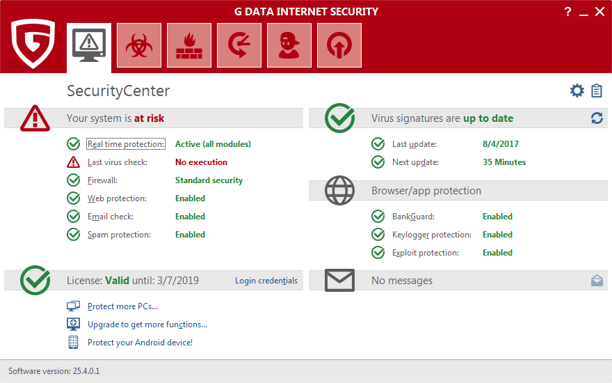 Aux mois de juillet et août 2017, AV-TEST a examiné 18 produits de sécurité destinés aux particuliers, dans leur configuration standard. Pour réaliser ces tests, les dernières versions de produits disponibles au public ont été utilisées. Grâce à la mise en jour en ligne, les versions ont pu être mises à jour à tout moment et leurs services « en nuages » étaient accessibles en permanence. AV-TEST n’a pris en compte que des scénarios de test réalistes et testé les produits par rapport aux menaces actuelles. Les produits ont dû prouver leurs capacités lors de l’utilisation de l’ensemble des fonctions et des niveaux de protection.