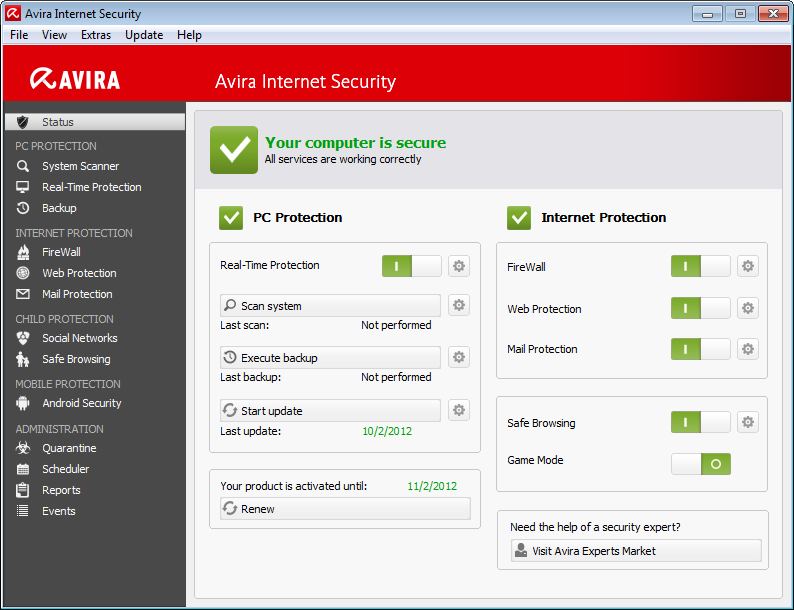Aux mois de septembre et octobre 2012, AV-TEST a examiné 24 produits de sécurité destinés aux particuliers, dans leur configuration standard. Pour réaliser ces tests, les dernières versions de produits disponibles au public ont été utilisées. Grâce à la mise en jour en ligne, les versions ont pu être mises à jour à tout moment et leurs services « en nuages » étaient accessibles en permanence. AV-TEST n’a pris en compte que des scénarios de test réalistes et testé les produits par rapport aux menaces actuelles. Les produits ont dû prouver leurs capacités lors de l’utilisation de l’ensemble des fonctions et des niveaux de protection.