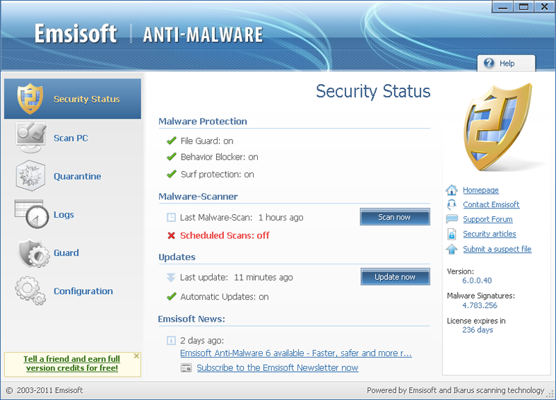 Aux mois de septembre et octobre 2011, AV-TEST a examiné 25 produits de sécurité destinés aux particuliers, dans leur configuration standard. Pour réaliser ces tests, les dernières versions de produits disponibles au public ont été utilisées. Grâce à la mise en jour en ligne, les versions ont pu être mises à jour à tout moment et leurs services « en nuages » étaient accessibles en permanence. AV-TEST n’a pris en compte que des scénarios de test réalistes et testé les produits par rapport aux menaces actuelles. Les produits ont dû prouver leurs capacités lors de l’utilisation de l’ensemble des fonctions et des niveaux de protection.