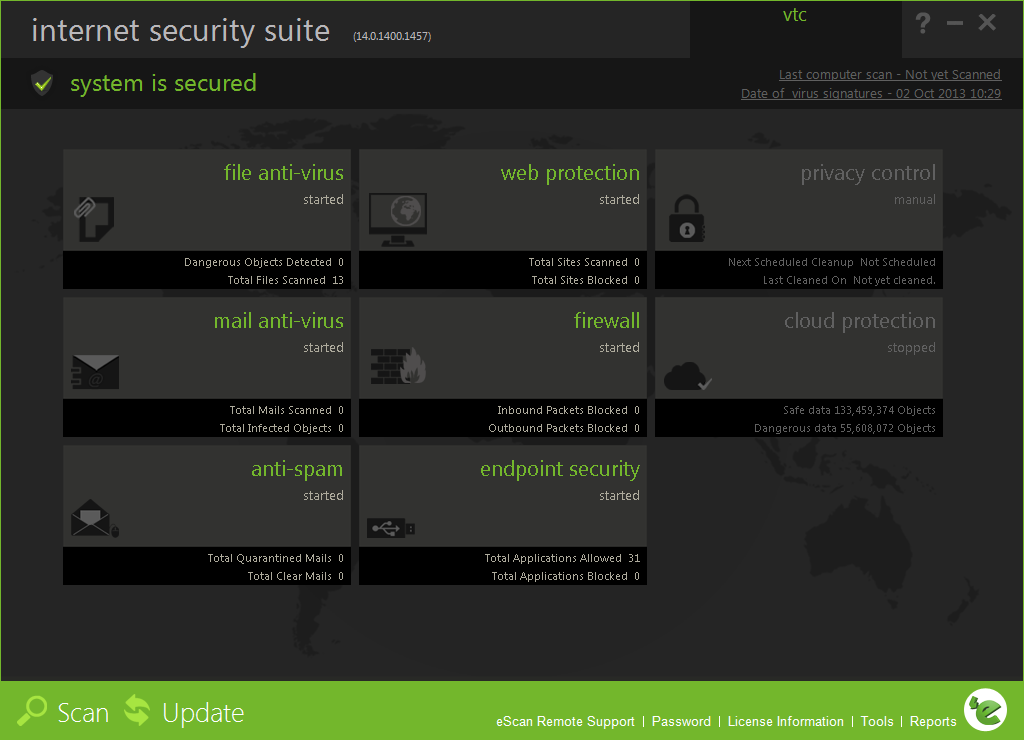 Aux mois de septembre et octobre 2013, AV-TEST a examiné 25 produits de sécurité destinés aux particuliers, dans leur configuration standard. Pour réaliser ces tests, les dernières versions de produits disponibles au public ont été utilisées. Grâce à la mise en jour en ligne, les versions ont pu être mises à jour à tout moment et leurs services « en nuages » étaient accessibles en permanence. AV-TEST n’a pris en compte que des scénarios de test réalistes et testé les produits par rapport aux menaces actuelles. Les produits ont dû prouver leurs capacités lors de l’utilisation de l’ensemble des fonctions et des niveaux de protection.