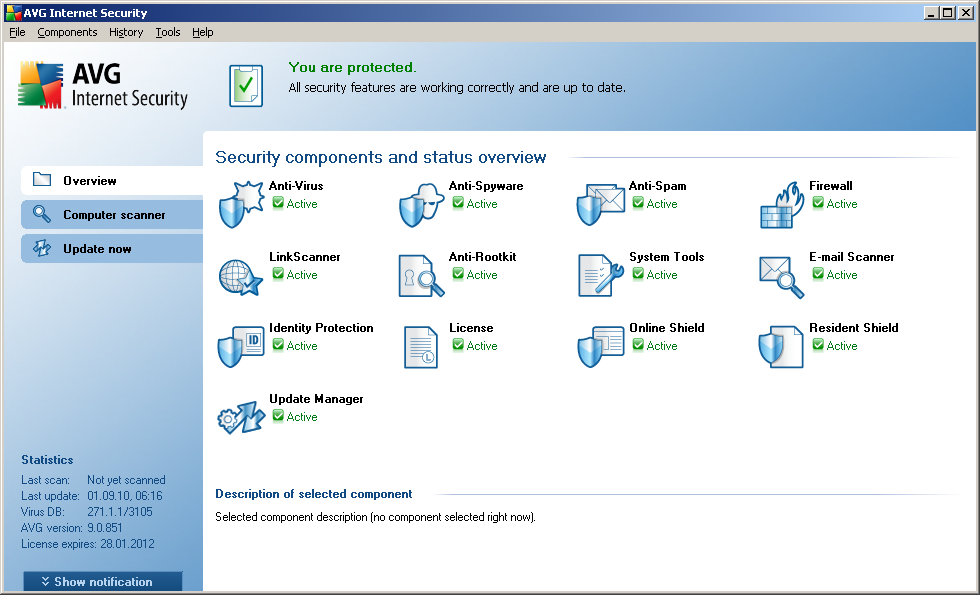 Aux mois de juillet, août et septembre 2010, AV-TEST a examiné 16 produits de sécurité dans leur configuration standard. Pour réaliser ces tests, les dernières versions de produits disponibles au public ont été utilisées. Grâce à la mise en jour en ligne, les versions ont pu être mises à jour à tout moment et leurs services « en nuages » étaient accessibles en permanence. AV-TEST n’a pris en compte que des scénarios de test réalistes et testé les produits par rapport aux menaces actuelles. Les produits ont dû prouver leurs capacités lors de l’utilisation de l’ensemble des fonctions et des niveaux de protection.