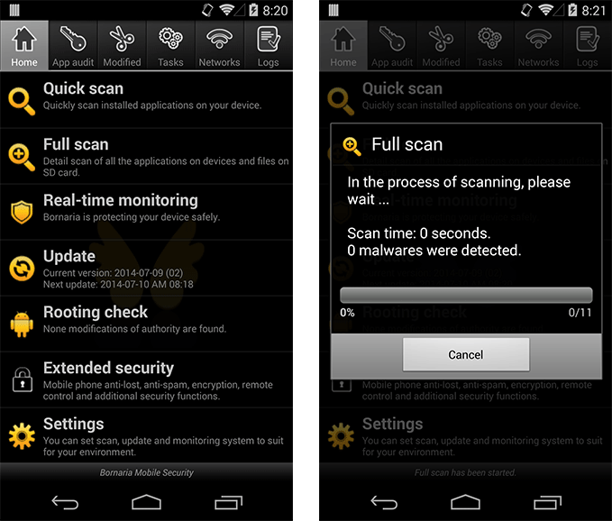 Au mois de juillet 2014, AV-Test a examiné 29 produits de sécurité pour Android. Pour réaliser ces tests, les dernières versions de produits disponibles au public ont été utilisées. Grâce à la mise en jour en ligne, les versions ont pu être mises à jour à tout moment et leurs services « en nuages » étaient accessibles en permanence. AV-TEST n’a pris en compte que des scénarios de test réalistes et testé les produits par rapport aux menaces actuelles. Les produits ont dû prouver leurs capacités lors de l’utilisation de l’ensemble des fonctions et des niveaux de protection.