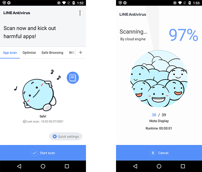 Au mois de mai 2021, AV-Test a examiné 17 produits de sécurité pour Android. Pour réaliser ces tests, les dernières versions de produits disponibles au public ont été utilisées. Grâce à la mise en jour en ligne, les versions ont pu être mises à jour à tout moment et leurs services « en nuages » étaient accessibles en permanence. AV-TEST n’a pris en compte que des scénarios de test réalistes et testé les produits par rapport aux menaces actuelles. Les produits ont dû prouver leurs capacités lors de l’utilisation de l’ensemble des fonctions et des niveaux de protection.