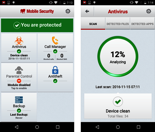 | Détection des logiciels malveillants actuels sur Android découverts ces 4 dernières semaines 2.910 échantillons utilisés | 99,3% | 100% |