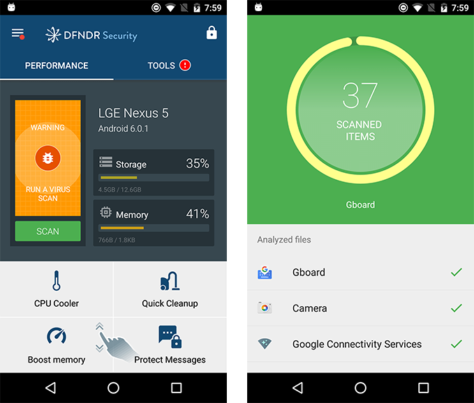 Performance : lors d’un usage normal, l’application ne ralentit pas l’utilisation de l’appareil.