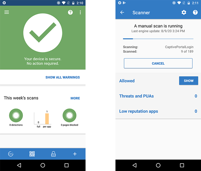 Au mois de septembre 2019, AV-Test a examiné 19 produits de sécurité pour Android. Pour réaliser ces tests, les dernières versions de produits disponibles au public ont été utilisées. Grâce à la mise en jour en ligne, les versions ont pu être mises à jour à tout moment et leurs services « en nuages » étaient accessibles en permanence. AV-TEST n’a pris en compte que des scénarios de test réalistes et testé les produits par rapport aux menaces actuelles. Les produits ont dû prouver leurs capacités lors de l’utilisation de l’ensemble des fonctions et des niveaux de protection.