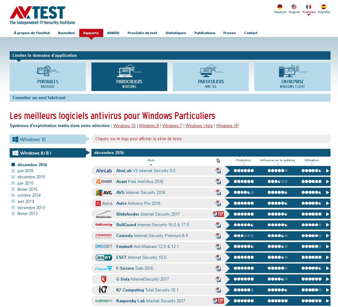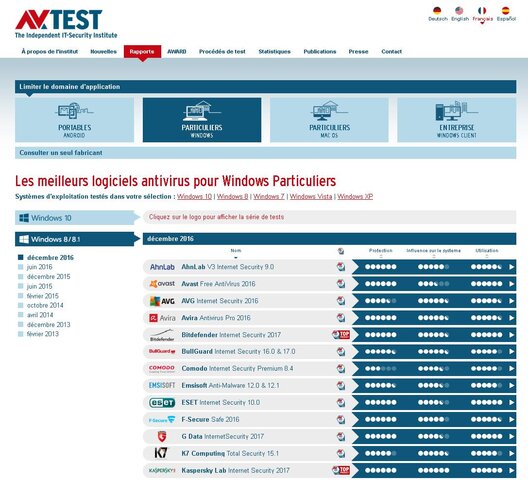 La meilleure protection contre les chevaux de Troie, virus et autres programmes malveillants est proposée par les suites de sécurité Internet. Ces dernières combinent une protection antivirus, un pare-feu, un filtre anti-spam et des fonctions supplémentaires qui protègent les ordinateurs, smartphones et tablettes d’autres attaques venant d’Internet comme celles des hackers. Pour savoir quel produit remplit le mieux sa mission, consultez les tests actuels sur le site Internet de l’institut AV-TEST.