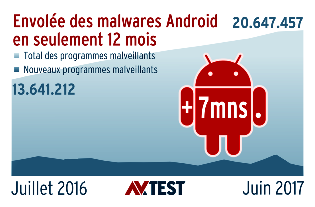 Le nombre d’appareils Android opérationnels dans le monde entier est vraiment impressionnant : en mars 2017, on en dénombrait déjà 2,5 milliards. Le nombre actuel de programmes malveillants enregistrés dans la base de données d’AV-TEST est tout aussi inquiétant : plus de 20 millions. Rien qu’entre juillet 2016 et juin 2017, le laboratoire a comptabilisé 7 millions de nouveaux malwares. Si vous pensez toujours qu’une application de protection Android est superflue, alors les experts estiment que vous ne pourrez-vous en prendre qu’à vous-même en cas d’attaque.