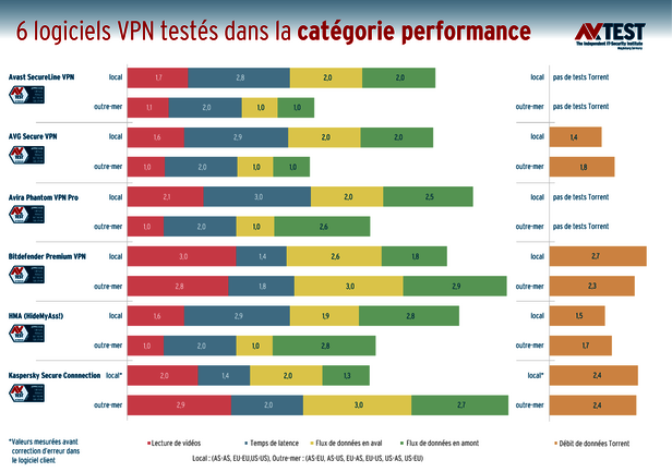 Le laboratoire a mis 6 logiciels VPN sur le banc d’essai, testé leurs performances et contrôlé leur niveau de confidentialité. Voici les produits testés :
