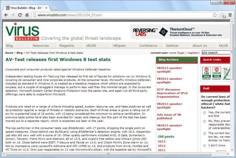 AV-TEST releases first Windows 8 anti-virus comparisons