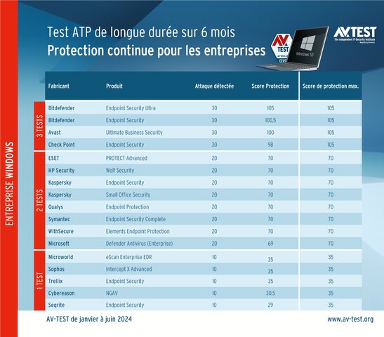 Résultat du test ATP de longue durée : 17 solutions de sécurité pour entreprises