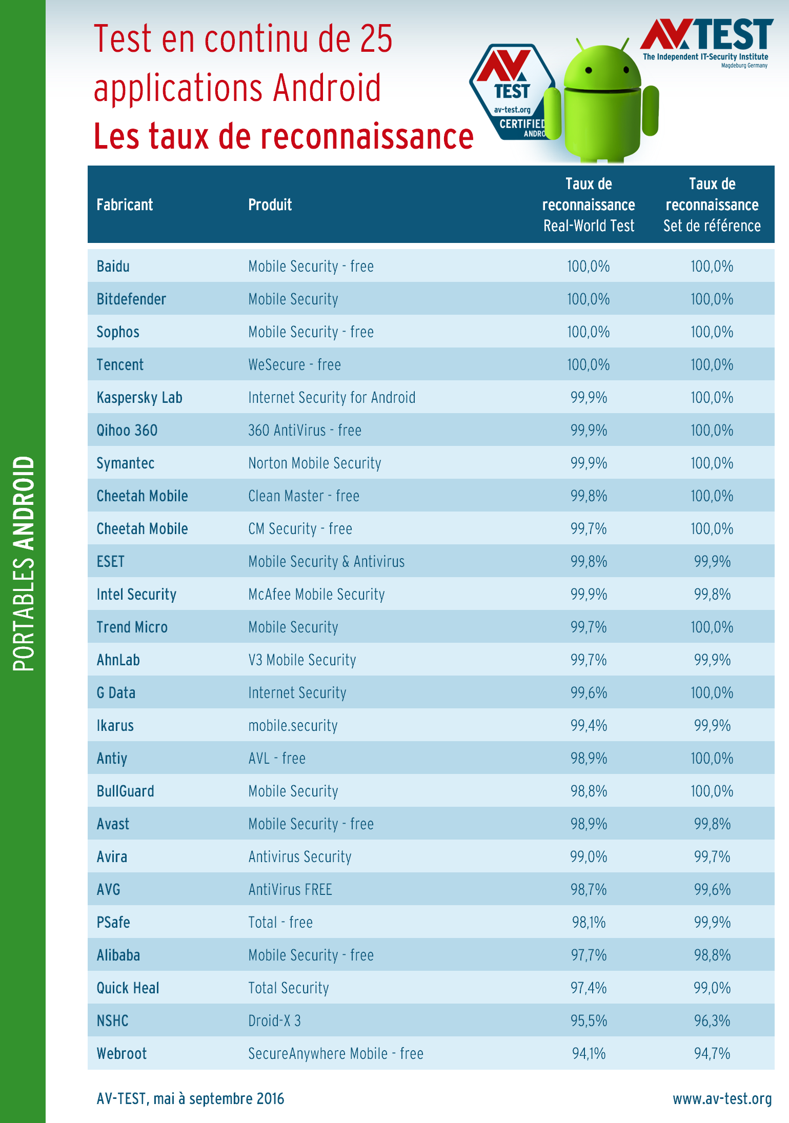 14 applications ont obtenu d’excellentes notes entre 12,8 et 13/13 lors du test de longue durée réalisé de mai à septembre 2016.