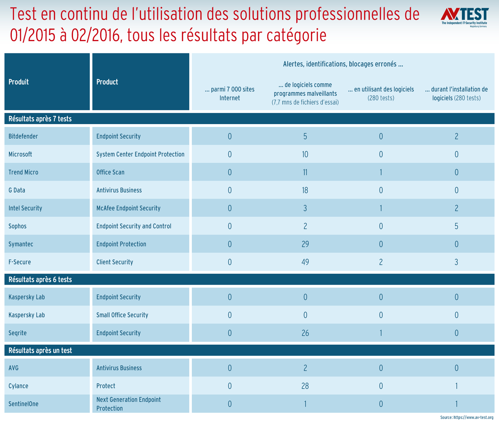 - Lors de la consultation de 7 000 sites Internet, il n’y a eu aucun « Message d’avertissement erroné ou blocage en visitant des sites Internet » pendant toute la durée du test des logiciels de protection pour les entreprises.