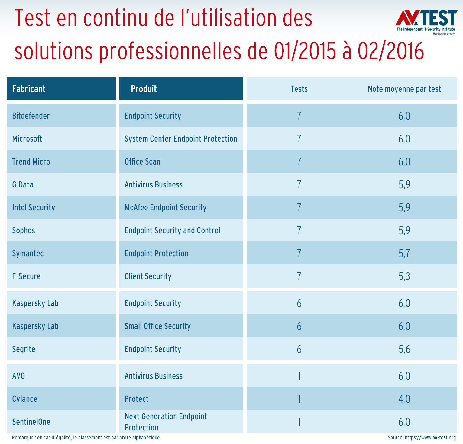 Si l’on compare les deux tests de logiciels de protection pour les entreprises et les particuliers, on constate que les solutions professionnelles émettent en moyenne moins de fausses alertes. Cependant, on remarque aussi que les fabricants proposant des produits pour ces deux groupes obtiennent les meilleurs résultats de test dans les deux cas. Cela concerne les produits de Kaspersky, Bitdefender, Microsoft, Trend Micro, Symantec et F-Secure.