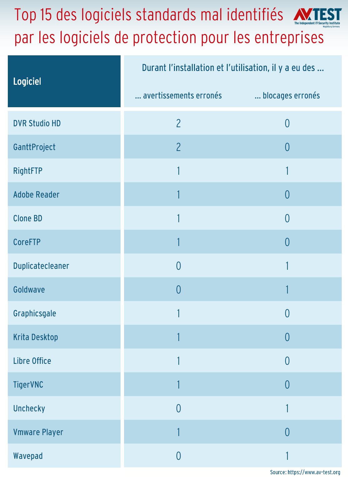 - « Avertissements erronés d’actions déterminées pendant l’installation et l’utilisation de logiciels normaux » : lors des 280 tests respectifs, seulement 4 des 14 programmes n’ont déclenché que 1 ou 2 fausses alertes. Ce résultat va ravir plus d’un administrateur au sein des entreprises.