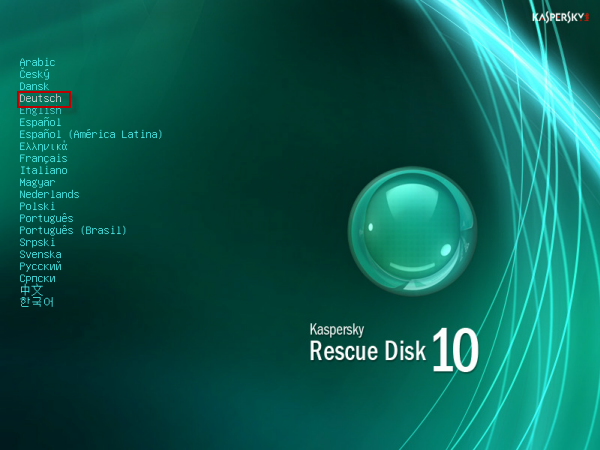 Avec Kaspersky, vous appuyez sur une touche quelconque pour ouvrir le menu après le démarrage. Vous sélectionnez ensuite votre langue puis choisissez le « Kaspersky Rescue Disk Graphicmode ».